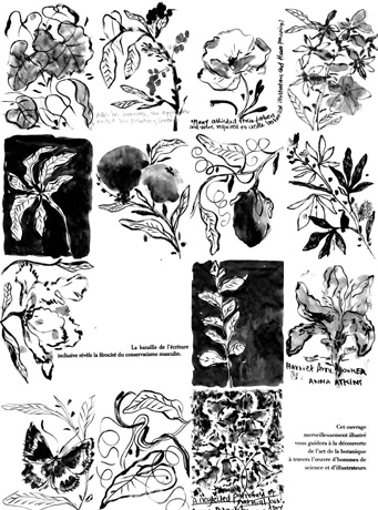 Les grands hommes de science…, 2021, Dessins à l’encre de chine + extraits de texte (L’art de la botanique et