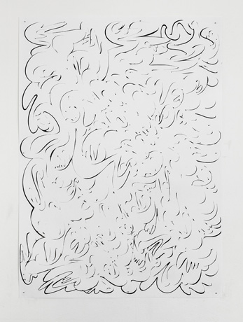 Kamil Bouzoubaa-Grivel dessine sur son téléphone et retranscrit la profondeur des lignes sur de grands formats en jouant des textures et de leurs reliefs. Sa recherche formelle s’inspire de la typographie, de l’histoire du dessin et des scribbles (gribouillis). Tout en usant d’une