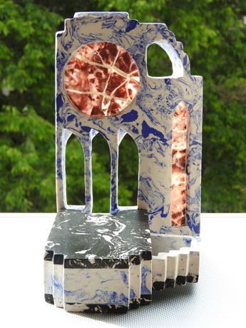 Boîte avec façade de cathédrale, 2021, Scagliola (plâtre), pigments, huile, 14 x 18 x 21 cm