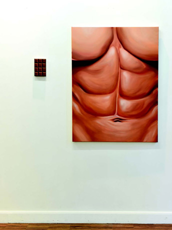 Torso et Chocotablette (dyptique), Huile sur toile, 2020, 18 x 12 cm et 120 x 90 cm