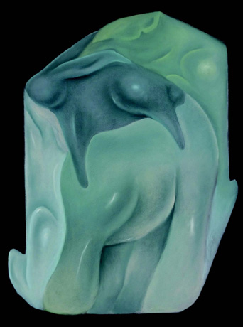sincérité, ses oeuvres sont habitées d’images issues de la mémoire, des intuitions spirituelles et de la pratique artistique. Artiste nomade, Yuna Denis choisit des supports naturels pour ses oeuvres lors de ses voyages autour du monde et de sa quête spirituelle. Le carton léger a alors remplacé les toiles lourdes et la densité de la gouache, le poids de l’huile.