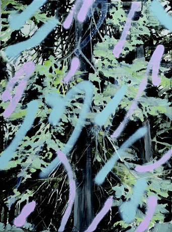 Sapin, 2021, Huile et peinture acrylique aérosol sur canvas, 40 x 30 cm