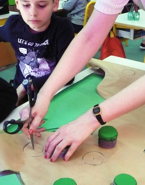 L’atelier proposé par Anaïs Leroy (Jeune Création 65) s’est appuyé sur la pratique qu’elle développe autour du réemploi des matériaux par le biais de l’architecture. Au cours des séances passés avec l’artiste, les élèves de CE2 de l’école Saint-Exupéry ont découvert et étudiés les notions de paysage, de ressources naturelles, de matières premières et de leur extraction jusqu’aux objets abandonnés et aux déchets. Ils ont ensuite élaborés des « créations architecturales » sous formes de compositions graphiques et de maquettes-sculptures. La restitution finale a pris la forme d’une exposition pop-up.
